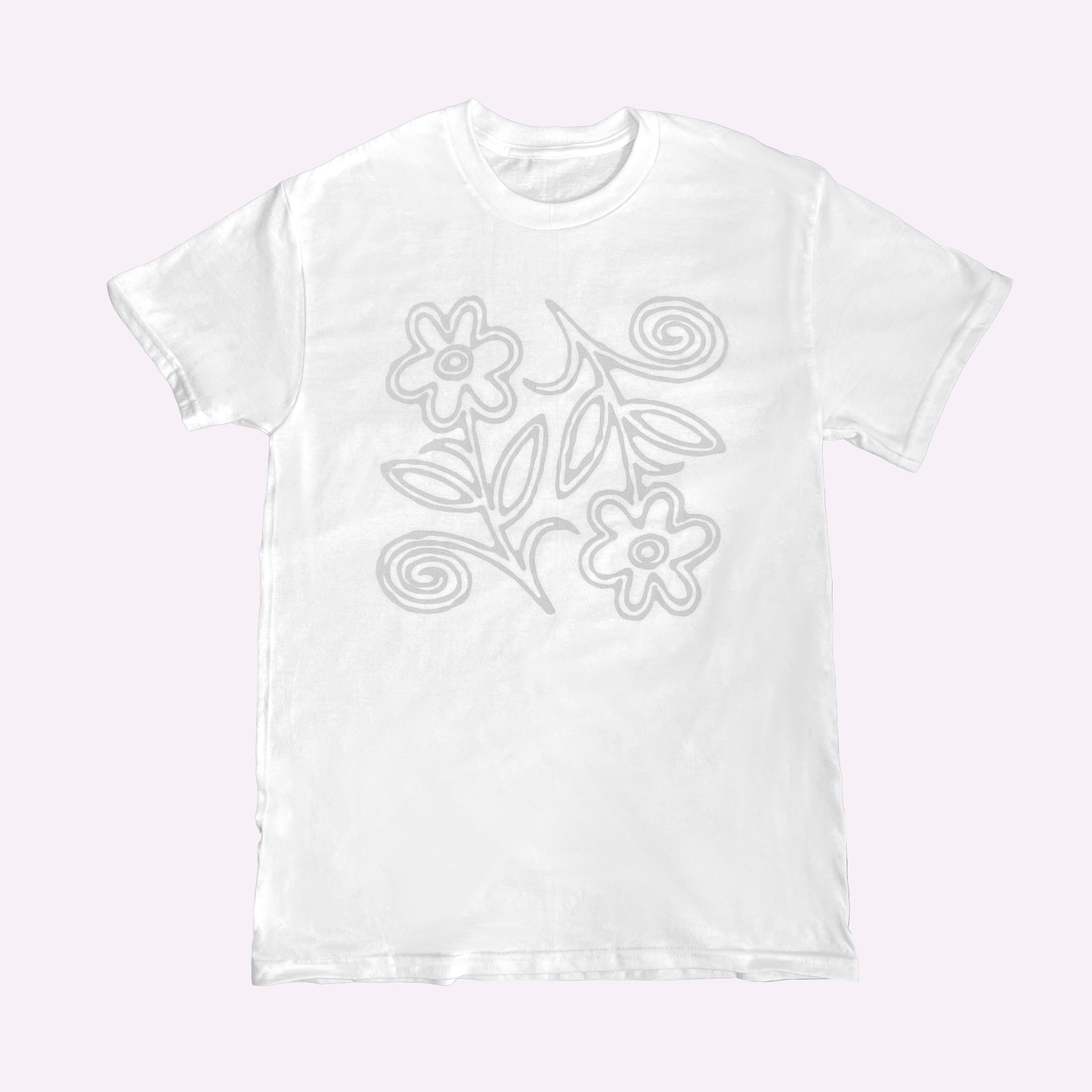 - White t-shirts with screen printed grey ink