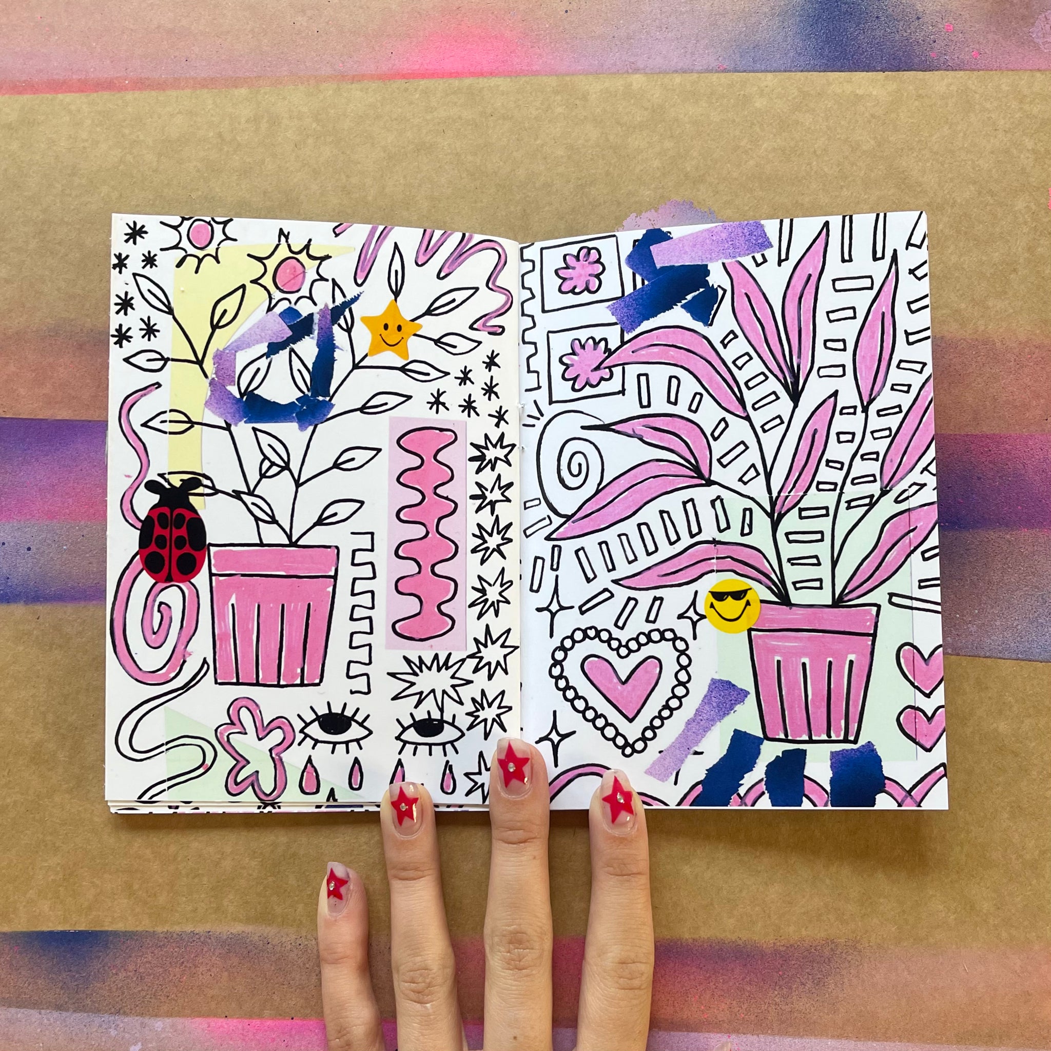 I set myself the challenge of filling in an entire messy, quick sketchbook in a day - then turned some of my favourite pages into a zine!